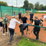 Bereits am Montag versammelte Sportwart Fabian Wick mit zwei weiteren Trainern einen Großteil der Teilnehmerinnen auf unserer Anlage, wo eine erste Einführung stattfand. Außerdem wurde im Anschluss bei einem Glas Sekt eine erste Gruppeneinteilung vorgenommen.