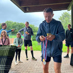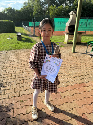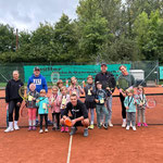Am 30. Juli kam der Großteil des Teams auf unserer Anlage zusammen, um die Saison mit einer kleinen Feier abzuschließen. Es gab Urkunden und Medaillen vom WTB, und Luisa spendierte ihren Teamkolleginnen und -kollegen noch ein Eis. Alle Kinder waren mega stolz auf ihre Leistungen – und ließen es sich nicht nehmen, danach noch einmal gemeinsam auf den Platz zu gehen, während die anwesenden Eltern den Abend gemütlich ausklingen ließen. Die fehlenden Teammitglieder haben ihre Goodies beim TCN-Tenniscamp Anfang August erhalten und waren ebenfalls happy und stolz.